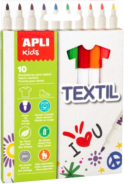 APLI Kids Textil 2, 9 mm TextilMarker - 10 db/ Csomag, Vegyes Színek