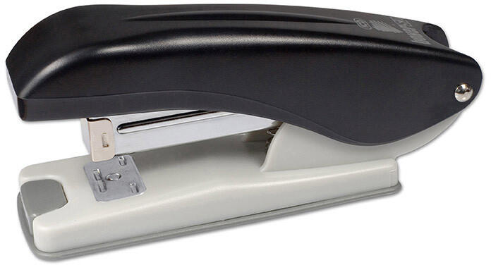 Irodai tűzőgép dokumentumok zárt tűzéséhez. A műanyag talp megakadályozza a bútorok sérülését. Kapacitás 20 lap, behelyezési mélység 45 mm. Drót 24/6, 26/6. Szín fekete.