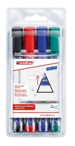 Fehértábla jelölő műanyag házzal és cserélhető heggyel. Újratölthető szegélyezett BTK 25 tintával Heggyel vágott, nyomszélesség 1---5 mm. 4 db-os készlet. Szín: 4 színből álló készlet Tipp típusa: csonka Nyomszélesség: 1 - 5 mm