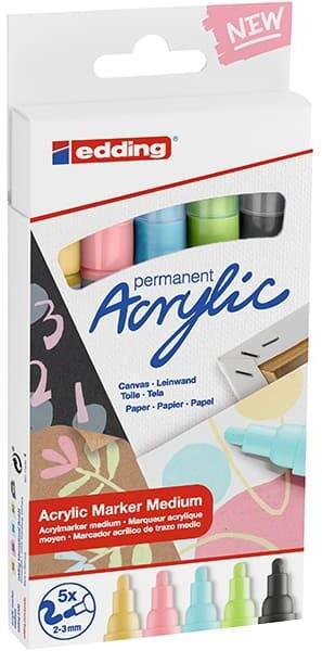 edding 5100 akril marker (filctoll) készlet, M (2-3 mm) - 5 db, pasztell