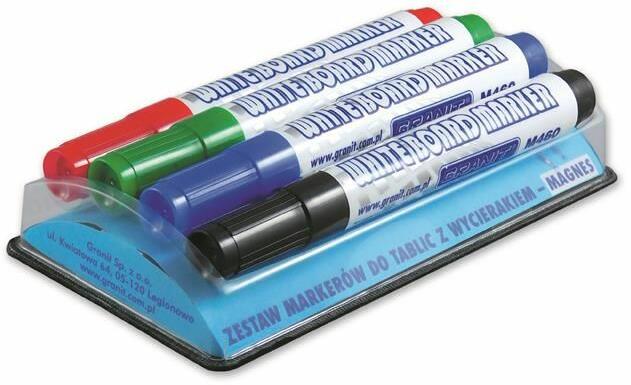 GRANIT Táblamarker készlet, 2-3 mm, kúpos, mágneses tolltartóval, GRANIT "M460", 4 különbözõ szín (5 db) (TGM460)