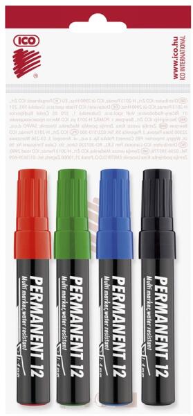 ICO Alkoholos marker készlet, 1-4mm, vágott hegyű, Ico 12, 4 klf. szín (9580008001) - irodasziget