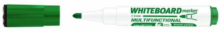 - multifunkciós táblamarker, - mágneses fehértáblára való írásra, rajzolásra - néhány napig kupak nélkül sem szárad be - a kupakban elhelyezett mágnes révén acél táblafelületeken rögzíthető - az írás szárazon letörölhető, melyet a kupak végén található táblatörlő korong is segít - kerekített hegy - vonalvastagság: 3 mm