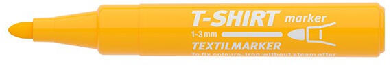 Textilmarker, textiliák pl:selyem, pamut, vászonra. Pl: tornacipő, póló, táska írására, jelőlésére alkalmas. Kerekített csúccsal, vízbázisú festékkel töltve, rendkívüli színtartóssággal és magas fényállósággal. A dekoráció rögzítése gőzmentes bevasalással történik. Rögzítés után 60 °C-ig mosható. Vonalvastagság: 1-3 mm.