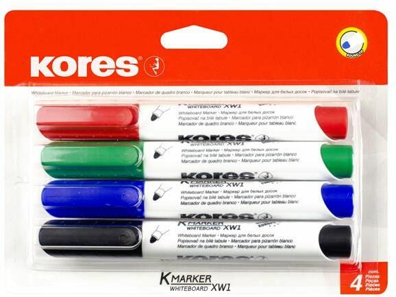 Kores Tábla- és flipchart marker készlet, 3 mm, kúpos, KORES "ECO K-Marker XW1", 4 különbözõ szín (4 db) (IK20724)