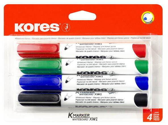 A Tábla- és flipchart marker készlet, kúpos, KORES Eco K-Marker, 4 különböző szín (IK20724) A KORES sokoldalú fehértábla marker könnyű és kényelmes írást biztosít