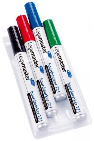 Alumínium testű tábla jelölőkészlet. A csúcs kerek, a nyom szélessége 1,5 - 3 mm. Cserélhető hegy. Tintafestékkel újratölthető. kód LM1199 01 - 4. Szín: 4 szín keveréke Tipp/talp szélesség: kerek/1,5-3 mm Cseretinta: LM1199 01-04