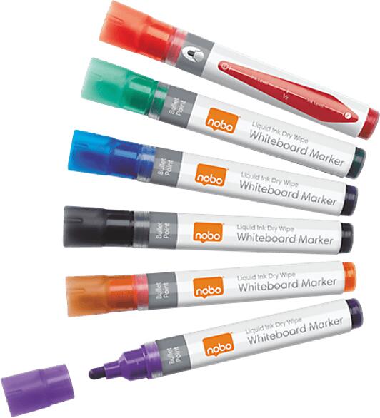 Nobo Folyékony tintás fehértábla marker, kerek hegyű, 6db, vegyes (1901419) (1901419)