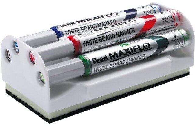 Pentel Maxiflo tábla jelölő készlet, kerek hegy 4 mm + mágneses szivacs, 4db (PEMWL5S-4N)
