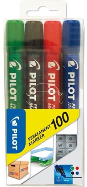 Pilot Alkoholos marker, 1 mm, kúpos, PILOT "Permanent Marker 100", 4 szín (PPM100S4) - fiorex