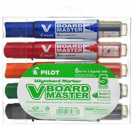 Pilot Táblamarker készlet, 2, 3 mm, kúpos, PILOT "V-Board Master", 5 különbözõ szín (5 db) (PBMTK5)