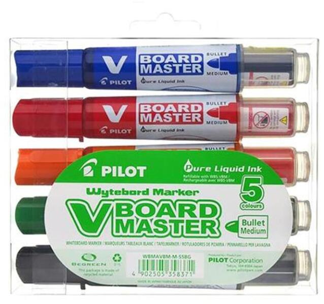 Pilot Táblamarker készlet, 2, 3 mm, kúpos, PILOT "V-Board Master", 5 különböző szín (PBMTK5) - fiorex