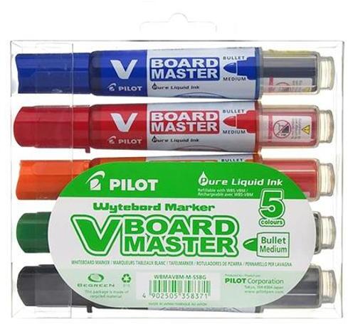 Pilot Táblamarker készlet, 2, 3 mm, kúpos, PILOT "V-Board Master", 5 különböző szín (PBMTK5) - papirtar