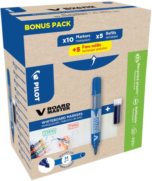 Pilot V-Board Master táblához Greenpack, kék - 10 darab + 10x utántöltő, kék (WLT556282)