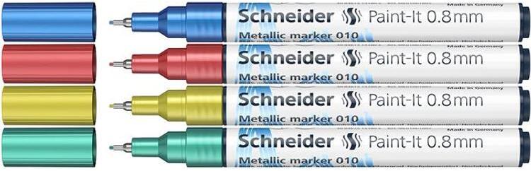 Schneider Akril marker készlet, 0, 8 mm, SCHNEIDER "Paint-It 010", 4 különböző metálfényű szín (ML01011502)