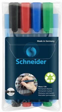 Schneider Alkoholos marker készlet, 1-3 mm, kúpos, SCHNEIDER "Maxx 130", 4 különbözõ szín (4 db) (TSC130V4)