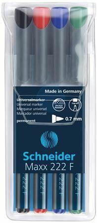 Schneider Alkoholos marker készlet, OHP, 0, 7 mm, SCHNEIDER "Maxx 222 F", 4 különbözõ szín (4 db) (TSC222V4)