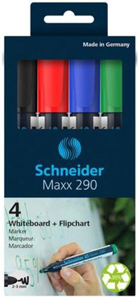 Schneider Tábla- és flipchart marker készlet, 2-3 mm, kúpos, SCHNEIDER "Maxx 290", 4 különböző szín (TSC290V4) - tintasziget
