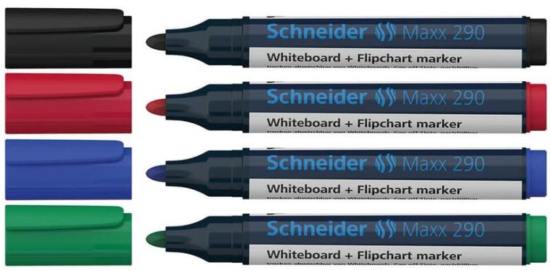 Schneider Tábla- és flipchart marker készlet 2-3mm, kerek végű Schneider Maxx 290, 4 klf. szín - suplix