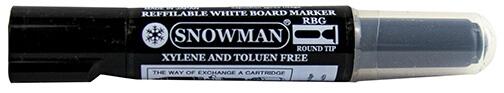 Táblamarker SNOWMAN patronos kerek fekete Folyékony tintás táblamarker cserélhető betéttel. . Alacsony szagkibocsátás. Nagy, kerek hegy. Az írás színe a kupak színével megegyező.