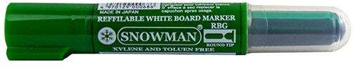 Táblamarker SNOWMAN patronos kerek zöld Folyékony tintás táblamarker cserélhető betéttel. . Alacsony szagkibocsátás. Nagy, kerek hegy. Az írás színe a kupak színével megegyező.