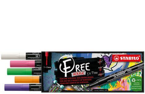 STABILO Akril marker STABILO FREE Acrylic T100 Kerek hegy 1-2 mm - Rugó, 5 db-os készlet