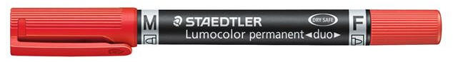 Alkoholos marker, 0,6/1,5 mm, kúpos, kétvégű, STAEDTLER "Lumocolor® duo 348", piros