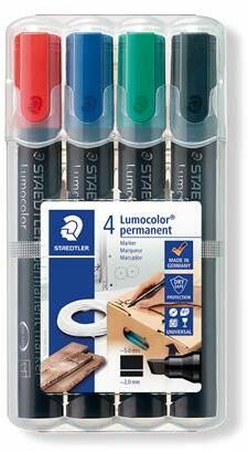 STAEDTLER Alkoholos marker készlet, 2-5 mm, vágott, STAEDTLER "Lumocolor® 350", 4 különbözõ szín (4 db) (TS350WP4)