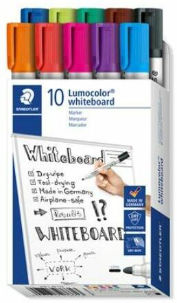 A STAEDTLER táblamarkerek különösen hasznosak előadásokhoz és prezentációkhoz, valamint kiválóan alkalmasak rajzolásra és jegyzetelésre az irodai brainstorming során. Mindenekelőtt fehér táblákon, speciálisan bevonatú táblákon és sima felületeken való használatra tervezték őket. -szárazon letörölhető a táblákról és olyan felületekről, mint az üveg és a porcelán, anélkül, hogy nyomot hagyna - így a hibák kijavítása nagyon egyszerű -gyorsan szárad -nem kenődik el -az eredmény távolról is jól látható -enyhe illatú -DRY SAFE - napokig nem szárad ki kupak nélkül -PP tolltest és kupak garantálja a hosszú élettartamot -repülőgép-biztonságos - az automatikus nyomáskiegyenlítés megakadályozza a toll szivárgását a repülőgépek fedélzetén -vonalvastagság: kb. 2,0 mm -utántölthető -felállítható STAEDTLER dobozbanAlcsoporttábla és flipchart markerKúposak vonalvastagsága2 mmHegykialakításkúposTinta színevegyesTolltest anyagaműanyagKupak nélküli időtartamnéhány napVízálló tintaNemUV- és fényálló tintaNemHőálló tintaNemTörlés módjaszáraz textilIdőjárásálló tintaNemUV-fényben világítNemUtántölthetőIgenFeketetá blára írNemFehértáblára írIgenFlipchartpapírra írNemFóliára írNemFagyott tárgyra írNemKerámiára, porcelánra írIgenÜvegre írIgenGumira írNemBetonra, kőre írNemFára írNemBőrre írNemMűanyagra írNemFémre írNemStyrofoamra írNemBiológiai úton lebomlóNemÚjrahasznosított anyagbólNemKörnyezetbarát gyártásNemKiszereléskészletKiszerel s mennyiség10 dbRepülésbiztos tintaIgenNémetországban gyártjákIgenFelállítható írószertartóbanIgenVonalvastagság2 mmHegy törésállóságaNyomásnak ellenálló hegyUtántölthetőtintávalEltávolíth atóságSzárazon törölhető