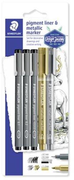 STAEDTLER Tusfilc és dekormarker készlet, 5 db, STAEDTLER, "pigment liner 308 (TS308SBK3P3) - tintasziget