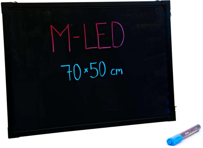 Írható LED Reklámtábla: Ragyogó reklámozás az Ön üzletében ✨ Ez az írható LED reklámtábla tökéletes megoldás üzlete, vendéglátóhelye vagy bármely kereskedelmi egysége számára, hogy hatékonyan hívja fel a figyelmet kínálatára és akcióira. A hátulról világító LED-ek lenyűgöző hatást keltenek, és a különböző effektek segítségével még figyelemfelkeltőbbé teheti reklámját. Főbb jellemzők:Kiváló minőségű PRO üveglap: Tartós és könnyen tisztítható. RGB LED-ek (126 db): Élénk és változatos színek széles skálája. 16 különböző effekt: Villogás, színátúszás és statikus színek (7 féle). 70 x 50 cm méret: Ideális méret a legtöbb üzlet számára. Gravírozható üveglap: Tartós feliratok, logók elhelyezésére. Tartozék filc: Könnyen írható és törölhető felület. Könnyű tisztítás: Száraz ruhával könnyen tisztítható. Kültéri használatra is alkalmas (cseppálló): Védett helyen használható kültéren is. A PRO minőség előnyei: A PRO változat a legjobb minőségű, első osztályú üvegből készül, biztosítva a tartósságot és a kiváló megjelenést. Bár a standard változat is kiválóan működik, a PRO verzió még hosszabb élettartamot és kifinomultabb megjelenést biztosít. Filcek: Egy filcet ajándékba adunk. További filcek külön vásárolhatók meg. Egy filc kb. 3-6 hétig használható. A filcek különböző színűek (fehér, citromsárga, narancssárga, piros, rózsaszín, lila, kék, zöld), és más-más módon reagálnak a megvilágításra, így változatos reklámozási lehetőségeket biztosítanak. Ideális: Vendéglátóhelyekre, üzletekbe, bárokba, pubokba, diszkókba – bárhová, ahol hatékony és látványos reklámozásra van szükség!