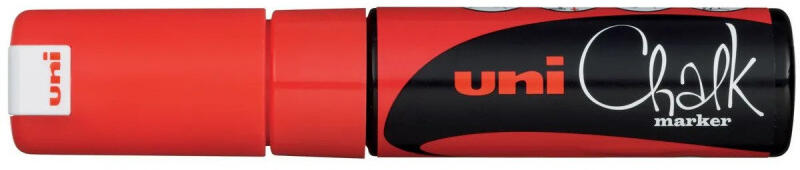 UNI folyékony kréta, piros fluoreszkáló színben.