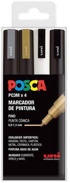 uni 4 db-os marker készlet, Posca PC3M, finom hegy, Mono Colors, Multicolor (TUPC3M4SP)