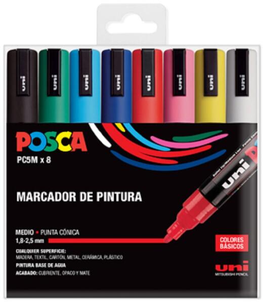 uni 8 db-os marker készlet, Posca PC5M, közepes hegyű, alapszínek (E17-K0204-4-2146)