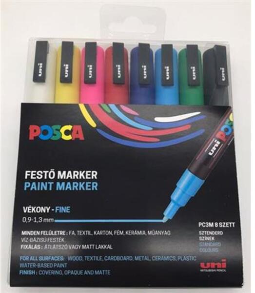 uni Dekormarker készlet, 0, 9-1, 3 mm, UNI "Posca PC-3M", 8 különböző szín (TUPC3M8DB) - tintasziget