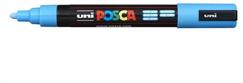 Uni Posca PC-5M dekormarker Írásvastagság: 1,8-2,5 mm Hegykialakítás: kúpos hegy Festék: oldószermentes, vízbázisú Szín: világoskék