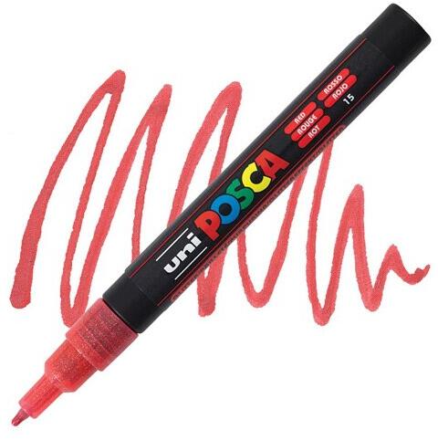 uni Marker UNI PC-3ML Posca 0, 9-1, 3 mm, csillámmal, piros, UK, 98018 (bx6)x144x576 (M1274-POSCA)