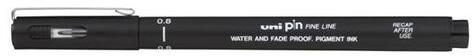 Az uni-ball PIN, egy fakulásálló és vízálló pigmenttinta rajzmarker, gyakran az első választás a művészek és a tervezők számára. A vastag, 0,8 mm-es tollhegy kiválóan alkalmas széles vonásokra és vonalakra, valamint színfedésre. A PIN tollhegy méreteinek széles választéka lehetővé teszi, hogy éles, tiszta vonalakat és olyan tökéletes technikákat hozz létre, mint a pontozva árnyékolás, a keresztsraffozás és az árnyékolás.