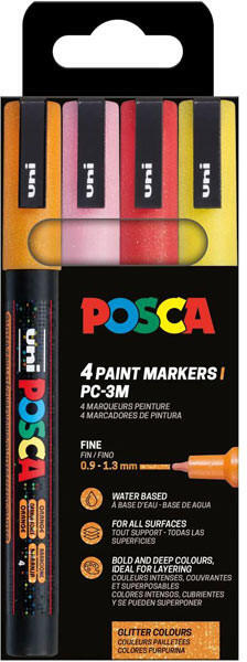 uni Uni Posca PC-3ML Készlet 4 Darab/Készlet Meleg Csillámló Színek PFP (2UPC3ML4DBMELEGCSILLAM)