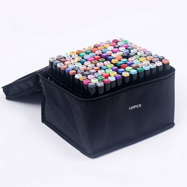 WePro Store 120 darabos WePro Store dupla marker készlet, professzionális, vékony és vastag, alkohol alapú tintával, tárolótáskában, többszínű (DF-67)